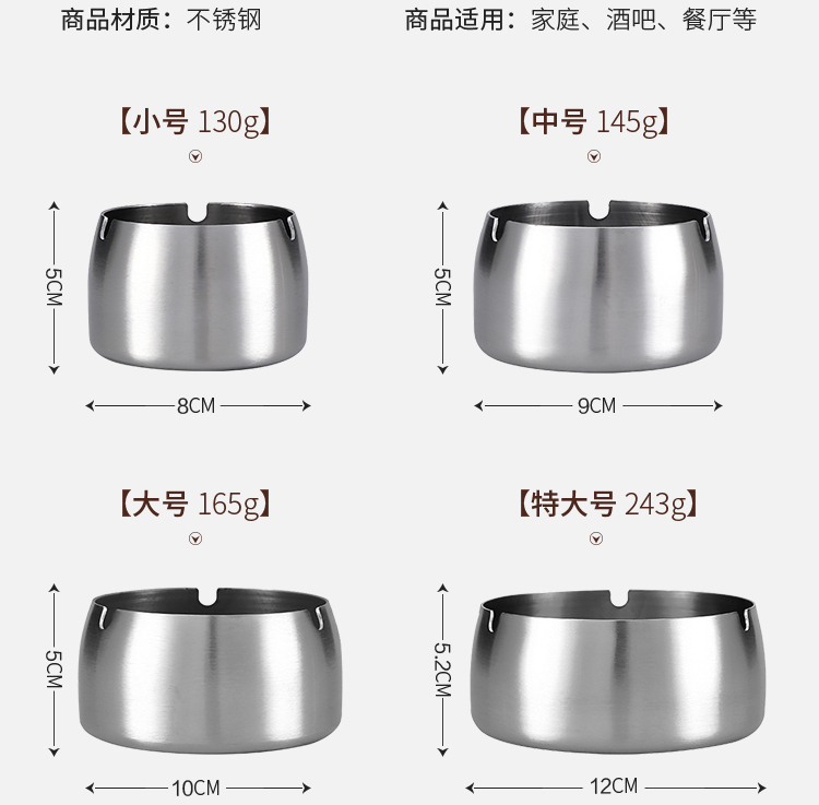 • 商品名称:艾灸灰缸不锈钢烟灰缸配带盖烟缸加厚创意烟盅网吧网咖防飞灰防新