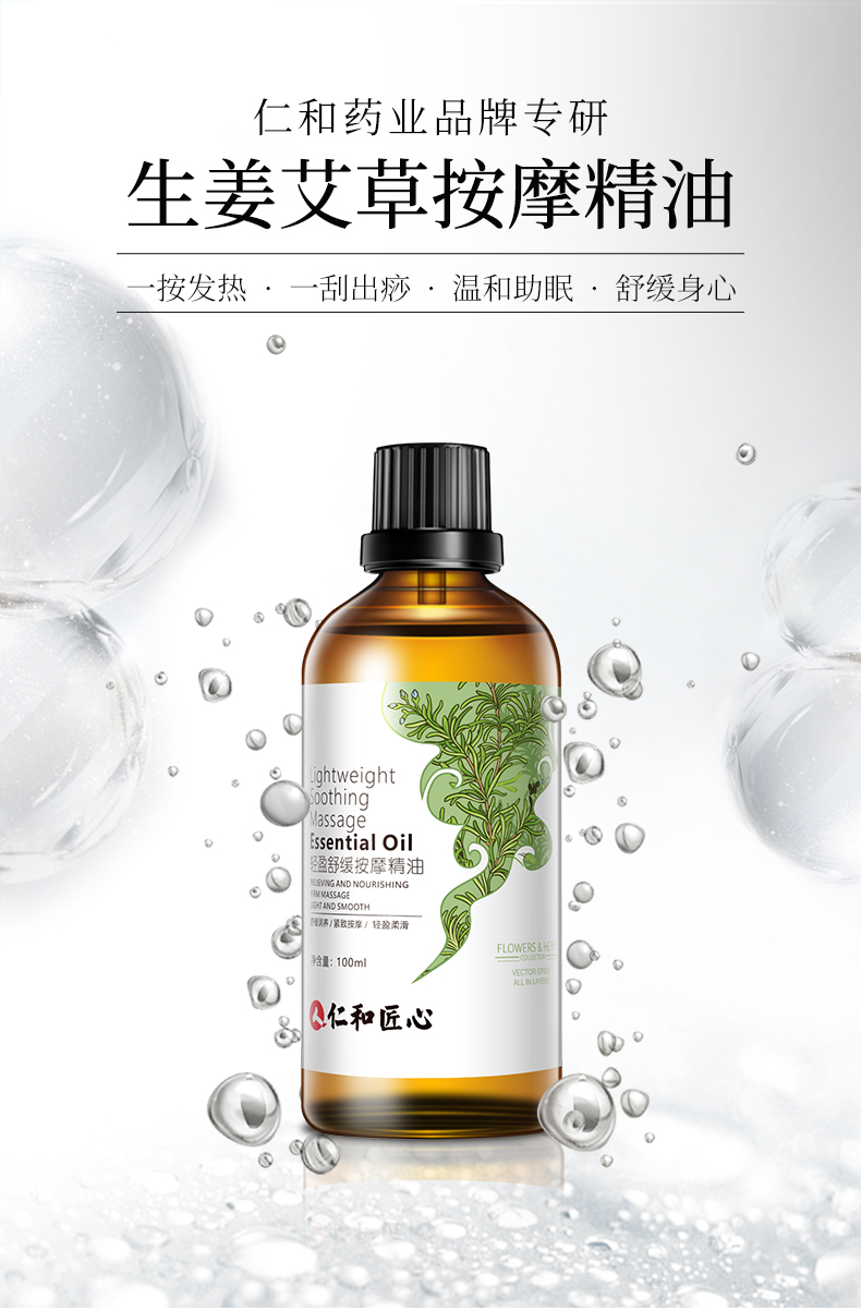 • 商品名称:仁和药业生姜艾草全身按摩精油面部美容通经络开背推背肩颈刮痧油