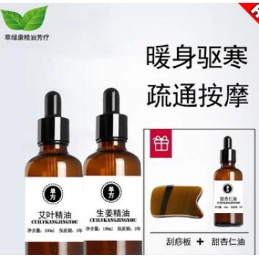 • 商品名称:(三瓶装)生姜艾草精油100ml 全身按摩肩颈刮痧通经络开背推拿油