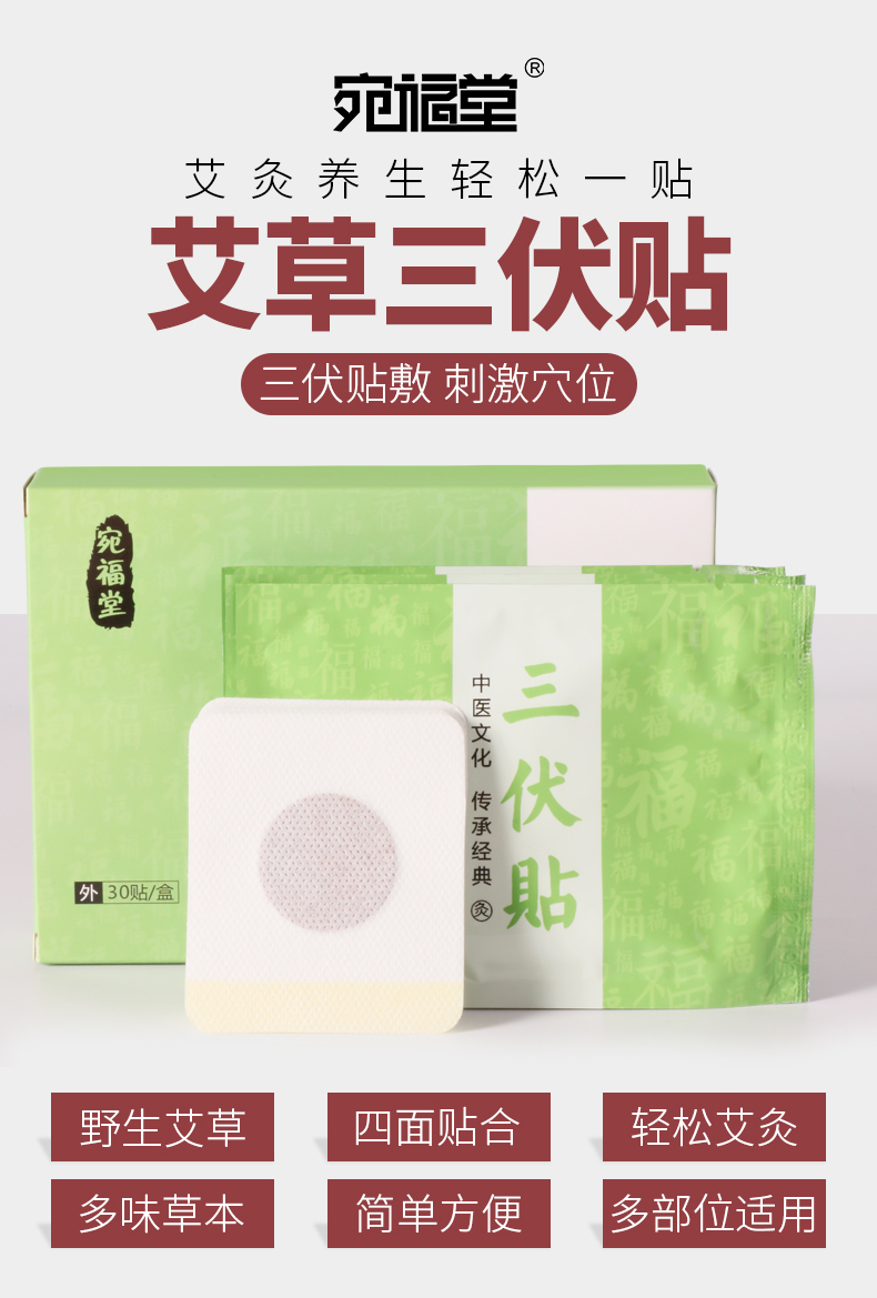 宛福堂三伏贴正品三伏灸肩颈艾叶温灸贴腰腿艾灸成人儿童冬病夏治